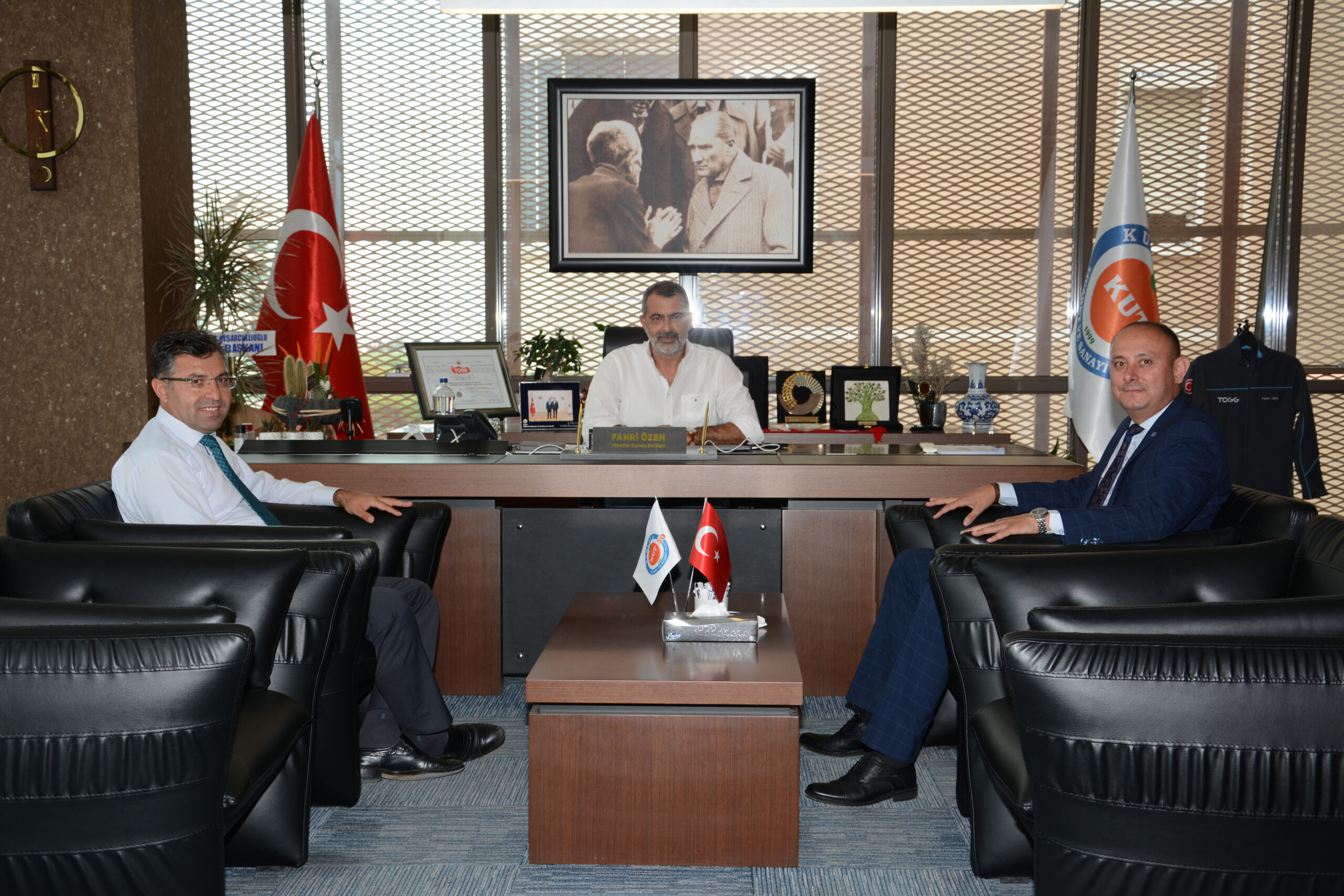 Halkbank Kumluca Şubesi Yeni Müdürü Süleyman YALÇIN, Müdür Yardımcısı Seyit Mehmet KÖLEOĞLU ile birlikte Odamızı ziyaret ettiler. Odamız Yönetim Kurulu Başkanı Fahri ÖZEN ev sahipliğinde gerçekleştirilen görüşmede Başkan ÖZEN, Süleyman YALÇIN’a yeni görevlerinde başarılar diledi. YALÇIN da Halkbank hizmetleri hakkında bilgi verdi.